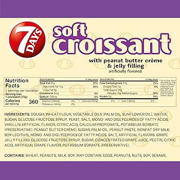 Individually packaged, ready-to-eat, PB&J filled croissants Deliciously soft, layered pastry with peanut butter & jelly filling. Enjoy for breakfast, as a snack, or for dessert.