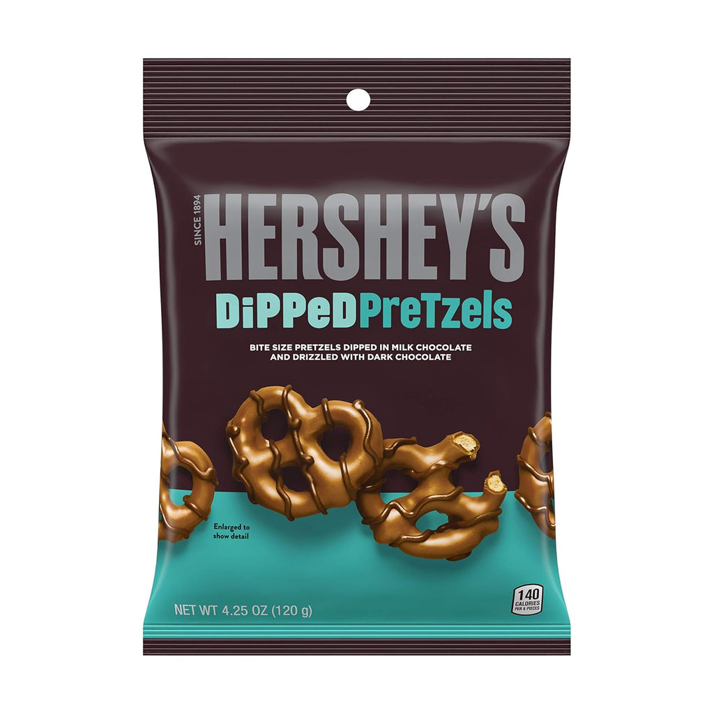 Look no further for the sweet and salty snack that’s sure to hit the spot. HERSHEY’S Dipped Pretzels are crunchy bite-sized pretzels, perfectly covered in smooth HERSHEY’S Milk Chocolate. An extra drizzle of HERSHEY’S SPECIAL DARK Chocolate make them the chocolate dipped pretzel to beat.