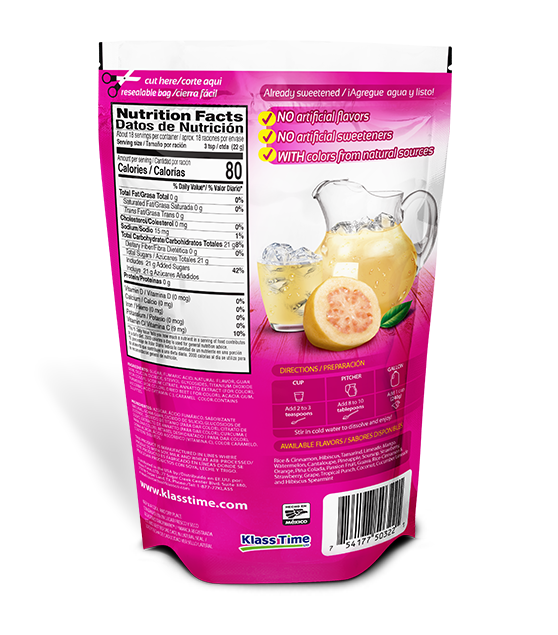 Klass Guava flavored drink mix is an excellent & nutritious beverage for you. Contains Guava Pulp and its a good source of Vitamin C. Just follow the directions indicated on the back of the package, add water & the drink mix (no sugar is required) and its ready to be served ice cold. Klass Guava comes in a resealable bag for fresh & easier storage. Just add water, forget the sugar!